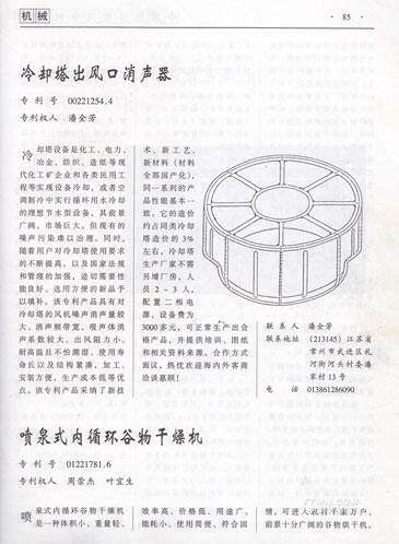 《冷卻塔出風口消聲器》 載入“中國優秀實用專利大全(第二部)"