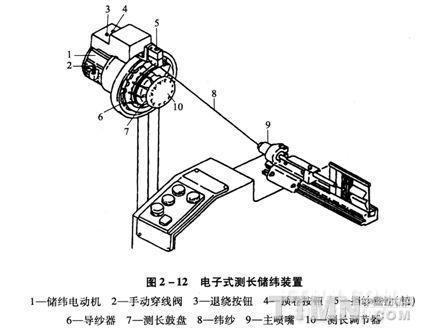 片梭和劍桿織機引緯時,緯紗前端被強制牽引,引緯長度由片梭或劍桿的運動距離決定,故用于片梭和劍桿織機的儲緯器不需要定長裝置;而噴氣織機為自由端引緯,引緯長度用流體無法控制,故用于噴氣織機的儲緯器必須帶有定長裝置,才能有效控制引緯長度。