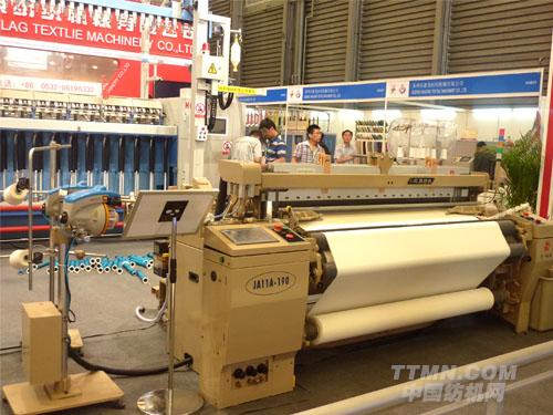 展示的兩臺噴氣織機,突出展示了天一紅旗紡機公司噴氣織機產品先進的設計、精良的制造和出眾的使用性能。看外觀,外觀穩重大方,運轉速度高,運轉平穩,振動小,噪音低,宛如英俊硬朗的青年,既英俊又能干。選色最高可達8種緯紗,入緯率最高可達2200米/分鐘,廣泛適應棉、毛、絲、麻、化纖、玻纖等各個紡織行業,織造品種廣,適應各種織物組織,特殊的光邊織造、分幅織造、上下雙層織物等也同樣能夠實現,此時又宛如一個心靈手巧的姑娘,能干而不嬌作。同時電子剪刀、自動潤滑,更加智能化人性化的電控操作界面,讓使用更方便直觀,省力省心。