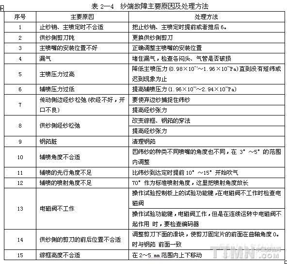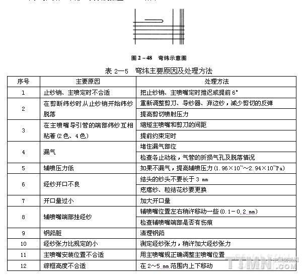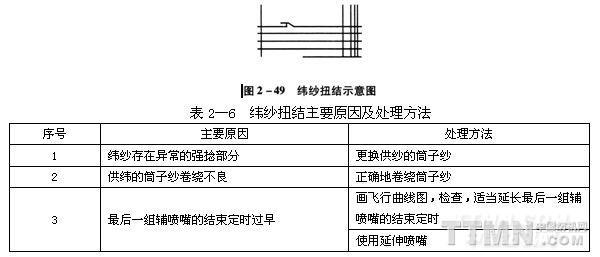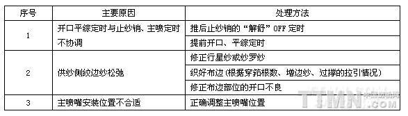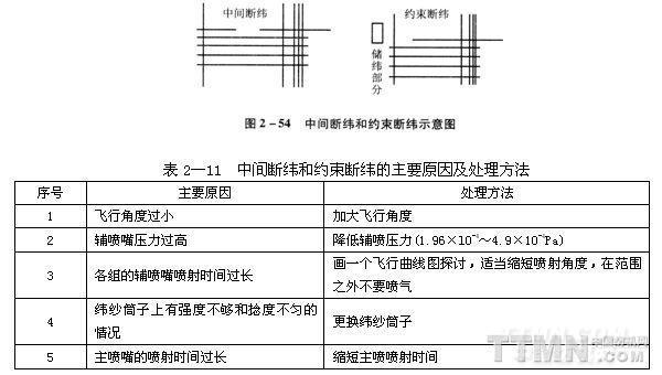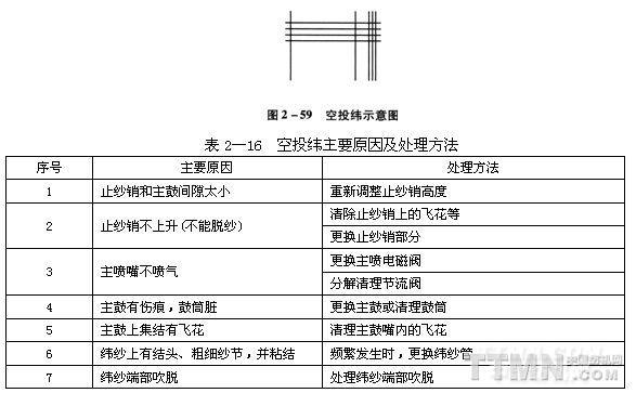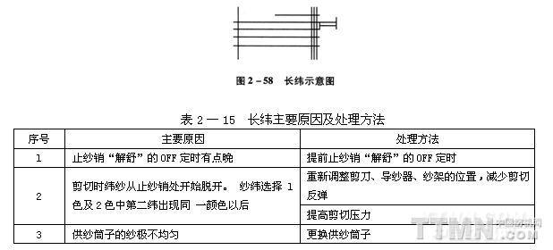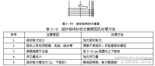 表2—7 織紗側邊經紗掛緯紗主要原因及處理方法