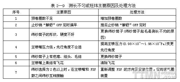 (2)短緯:測長不勻嚴重,主噴嘴內集結飛花等,這種現象會引起停機。