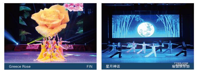《Greece rose》音樂響起來,F(xiàn)in ladies 翩翩起舞,舞姿輕柔,笑容明媚。色彩明艷的長裙在舞臺上極盡優(yōu)雅的線條,藍(lán)色紗幔將柔美演繹得如夢如幻,淋漓盡致。