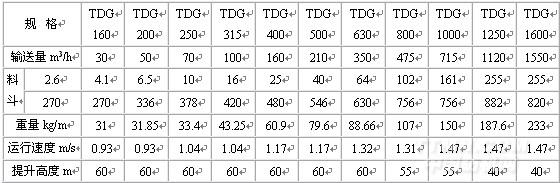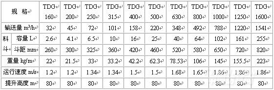 TDG型高效斗提機技術參數: