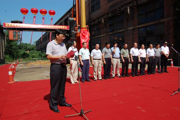 揭彩儀式由邵陽紡機公司黨委書記、副總經理劉序焱主持,常務副總經理王澤民講話,市委常委、市紀委書記張亦賢致辭并宣布下線。9:58點市委書記童名謙和邵陽紡機公司總經理李新橋為旋挖鉆機揭了彩,副市長陳恢清等到場祝賀并一起觀摩旋挖鉆機試鉆情況,我們都見證了這激動人心的場面。
