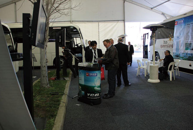 此次展會,百路佳攜五款高端豪華客車閃亮登場。這五款優秀的產品分別是:JXK6601純電動客車,STA6123不銹鋼混合動力公交車,及JXK6127BR,JXK6840,JXK6960CR三款針對澳洲市場特別定制的豪華旅游客車.2009年,百路佳生產的JXK6830純電動客車和JXK6960混合動力客車就曾亮相墨爾本。這次的兩款新能源車型更是提升了澳洲客戶對我司的信心,客戶非常認可我司在新能源客車領域的成績,在提到這兩款車型時他們說道“Become better and better!”