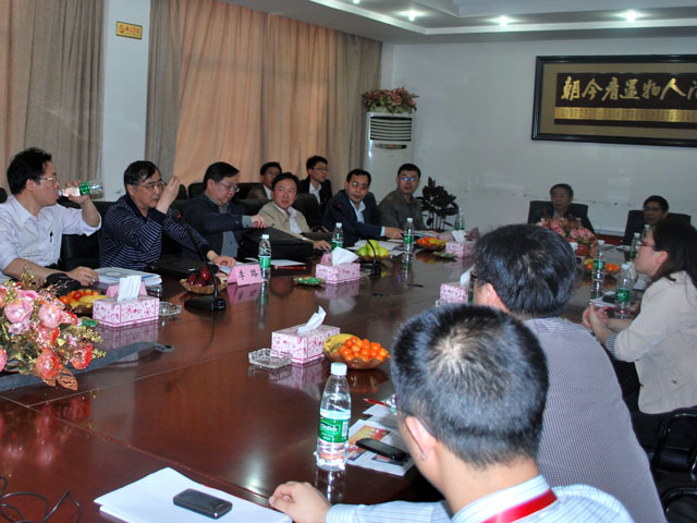 公司副總經(jīng)理彭禮紅女士向省、市經(jīng)(工)信委領(lǐng)導(dǎo)做工作匯報(bào)