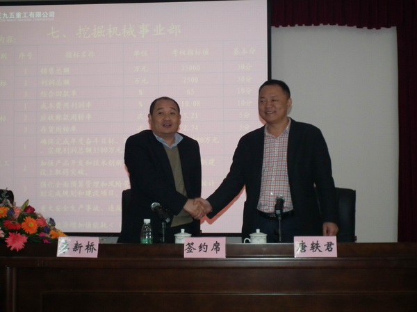 根據2011年公司整體目標,公司總部對各分子公司、事業部下達了今年的經營任務。邵陽紡機、衡陽紡機、無錫飛達紡機、新魯包裝印刷、新瑞基礎、樁工機械事業部、挖掘機械事業部、包裝機械事業部、包裝印刷事業部、農業機械事業部、結構件事業部、液壓件事業部共5個子公司和7個事業部負責人分別與李新橋總經理簽訂了2011年度經營目標責任狀。在新的起點、新的規劃下,2011年的經營目標要求各分子公司及事業部要實現新的跨越,所有分子公司及事業部的經營指標均有不同程度的提升。大會上,各位負責人激情昂揚,信心百倍,紛紛發言勇表決心,一致表示將全力以赴完成甚至超額完成任務,力爭在恒天九五重工有限公司的全新平臺上,大展身手。