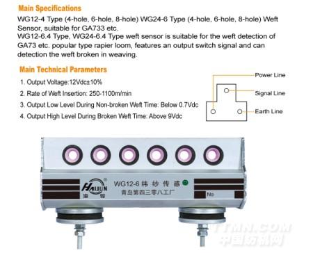 - [新聞]-->青島海駿光機(jī)電技術(shù)開發(fā)有限公司-WG12-6.4Type Weft Sensor
