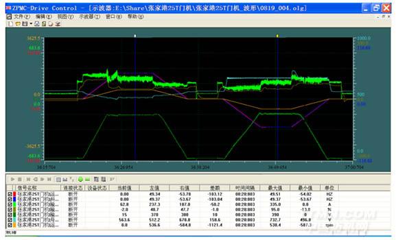 觀察抱閘時序控制正常后再安裝好主軸聯動機構,設定速度由低速到高速的步驟運行。帶負載調試時,堅持由輕負載到重負載的步驟調試,同時注意觀察變頻器運行電流及電機運轉狀態。通過修改P8組(增強功能組)中的輕負載升速使能參數,驗證吊重物時0-50HZ之間運行,空鉤時0-100HZ之間運行。