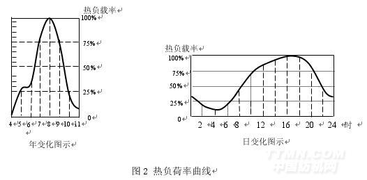 在中央空調(diào)系統(tǒng)設(shè)計(jì)時(shí),冷凍泵、冷卻泵的電機(jī)容量是根據(jù)建筑物的最大設(shè)計(jì)熱負(fù)荷選定的,都留有一定設(shè)計(jì)余量。由于四季氣候及晝夜溫差變化,中央空調(diào)工作時(shí)的熱負(fù)荷總是不斷變化。下圖2為一民用建筑物的平均熱負(fù)荷情況: