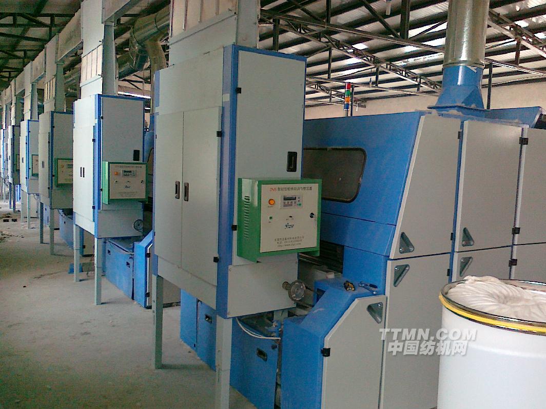 是我國生產梳棉機最早最多的廠,幾十年來積累了豐富的經驗,1993年與金壇紡機廠聯合開發第一套清梳聯,幾年后自行研制開發清梳聯中開清棉機組,打破傳統的模式,廣泛吸收國內外開清棉的先進技術與國際協作配套相結合,近期又消化吸收德國He-gerth公司抓棉機、主除雜機、瑞士Rieter公司B1單軸流開棉機、多倉混棉機等。研制了FT301B連續喂棉控制系統、FT024自調勻整裝置(或配SLT-N勻整器),配FAl78A配棉箱。可任意選FA201B、FA231、FA203A等高產梳棉機組合的清梳聯。