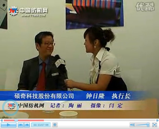 今年6月22日,2010年中國(guó)國(guó)際紡織機(jī)械展覽會(huì)暨ITMA亞洲展覽會(huì)在上海盛大開幕。在展會(huì)現(xiàn)場(chǎng),碩奇科技股份有限公司執(zhí)行長(zhǎng)鐘日隆先生接受了記者的采訪。
