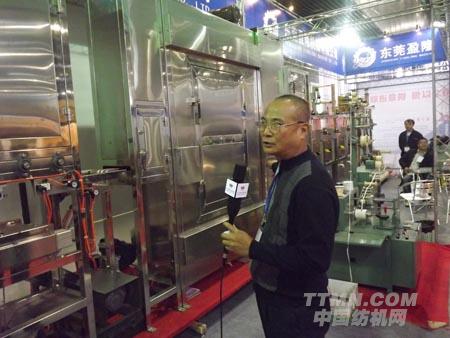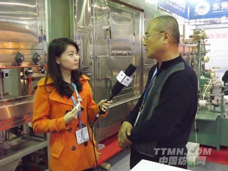 (圖為中國紡機網記者在采訪東莞盈隆機械的黃總 中國紡機網(TTMN.COM)攝)