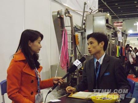(圖為多普森的茍經理在接受中國紡機網記者的采訪  中國紡機網(TTMN.COM)攝)