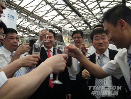 祝酒儀式現(xiàn)場,賀鳳仙女士與公司同仁一起開啟了榮譽(yù)的香檳,在全場嘉賓的共同舉杯下見證了這榮譽(yù)的時刻,中外嘉賓齊聚一堂共同慶祝立信工業(yè)獲得今天的成就。現(xiàn)場嘉賓頻頻向賀女士表示祝賀,同時,何女士向到場的各位嘉賓表示感謝,同時還一同向大家展示了獲獎證書。