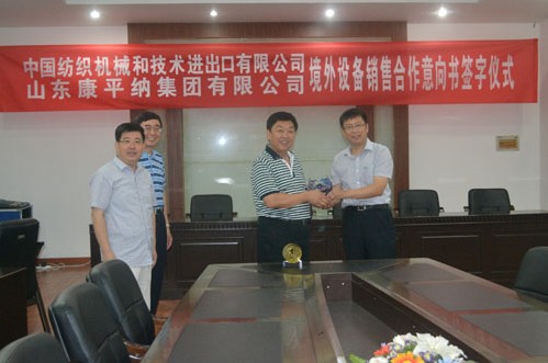 近日,中國紡織機械和技術進出口有限公司與山東康平納集團有限公司簽訂境外設備銷售合作意向書,在除中國大陸境內以外的海外市場,利用進出口有限公司廣泛的海外渠道,推銷我公司生產的自動化染色成套設備、多功能濕整設備、數控化后整理設備等設備,以及我公司在毛紡領域擁有的先進的生產工藝和技術進行海外技術貿易。合作協議的簽訂標志著康平納毛紡染整工藝技術及機械設備在邁向海外市場邁出了堅實的一步,與康平納品牌面料共同走出國門,享譽世界。