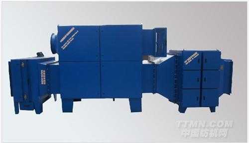 在2012年國際紡機展上,常州藍博紡織機械有限公司展出了LJH定型機尾氣靜電除油裝置。