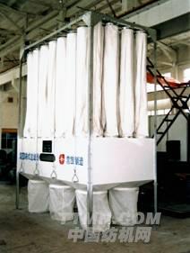 車間含塵空氣通過風機送入靜壓箱內,由于風速急劇下降,大部分纖維塵雜自然落入集塵袋內,小部分粉塵隨空氣吸附在過濾袋上,通過振蕩機構定時振蕩,也落入集塵袋內。
