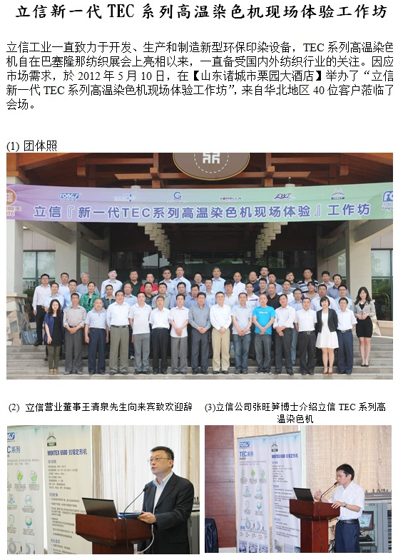 立信新一代TEC系列高溫染色機現(xiàn)場體驗工作坊