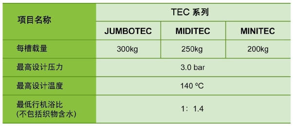 目前,國際上對于環(huán)保的要求越來越嚴格,中國十一五規(guī)劃中也將節(jié)能減排作為對各級政府的考核指標之一,在十二五規(guī)劃中將其標準化。各紡織品生產(chǎn)商以及設備供應商都已經(jīng)充分認識到這一點,并將其賦予到行動中。同時隨著紡織織造技術的提高以及客戶對紡織產(chǎn)品的質(zhì)量要求不斷提高,加工一些高難度的產(chǎn)品對染色機器以及工藝都提出了更高的要求,開發(fā)新型染整設備也成為各大印染設備公司的迫切課題。 立信最新 TEC 系列高溫染色機,取得多項技術突破,大載量,低浴比,勻染好,更環(huán)保。 TEC 高溫染色機特別適合加工處理組織結構比較緊密的針織織物,如 40S/2,20S/1,26S/1 棉平紋布,可以解決此類織物存在色折痕的問題,提高產(chǎn)品質(zhì)量