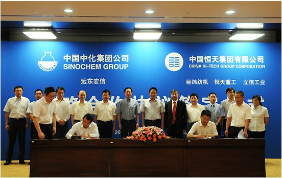 7月25日,恒天集團紡機事業部與中化集團所屬遠東宏信有限公司就雙方在紡機設備領域展開融資租賃業務合作事宜簽訂戰略合作協議。出席簽約儀式的雙方領導有:恒天集團董事長張杰、副總裁葉茂新、經緯股份總經理姚育民、經緯股份副總經理史建平、立信營業董事梁尚偉、恒天重工黨委副書記李泉等,中化集團總裁劉德樹、遠東宏信總裁孔繁星、中化集團辦公廳主任李強、遠東宏信副總裁曹健、遠東宏信副總裁王瑞生等。