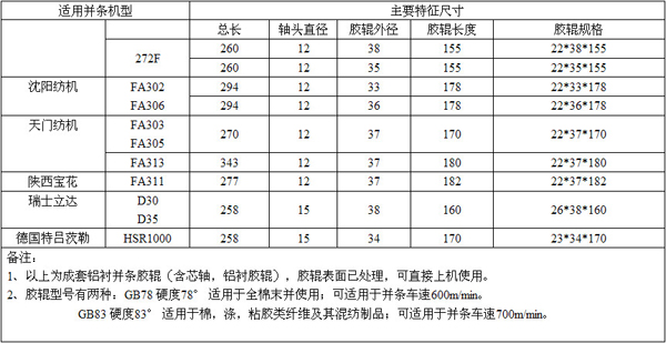 公司推出并條機成套膠輥