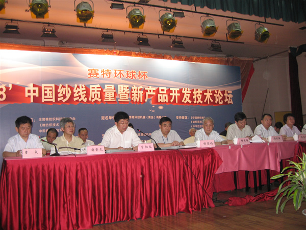 2008賽特環球杯中國紗線質量暨新產品技術論壇會于5月26日在濟南順利召開,會議由《中國棉紡織技術》主辦、賽特環球機械(青島)有限公司冠名。參加會議的有中國紡織工業協會、技術工程院校、新聞媒體、行業權威機構專家以及紡織行業相關企業。
