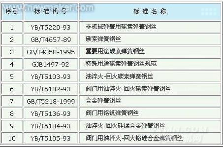 (2)YB/T5104-93《油淬火-回火硅錳合金彈簧鋼絲》和YB/T5105-93《閥門用油淬火-回火鉻硅合金彈簧鋼絲》。
