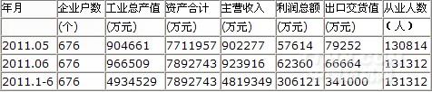 據(jù)國家統(tǒng)計(jì)局公布的數(shù)據(jù),2011年1-6月份我國規(guī)模以上紡織機(jī)械行業(yè)企業(yè)數(shù)量為676家,該行業(yè)實(shí)現(xiàn)工業(yè)總產(chǎn)值493.45億元,同比增加31.32%;資產(chǎn)合計(jì)789.27億元,同比增加27.84%;實(shí)現(xiàn)主營收入481.93億元,同比增加30.77%;完成利潤總額30.61億元,比上年同期增加7.91億元,同比增加34.82%;完成出口交貨值34.10億元,同比增加23.86%;行業(yè)整體從業(yè)人數(shù)13.13萬人,同比增加8.01%。由此可見,紡織機(jī)械行業(yè)總量增長勢頭良好,并為我國經(jīng)濟(jì)、財(cái)政、出口和就業(yè)作出了重大的貢獻(xiàn)。
