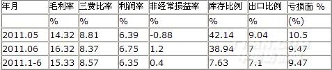 從企業(yè)生產(chǎn)經(jīng)營和盈利狀況看,紡織機(jī)械行業(yè)毛利率2011年1-6月份為15.33%,三費(fèi)比率(營業(yè)、管理和財(cái)務(wù)費(fèi)用率之和)為8.57%,利潤率為6.35%,如果剔除非經(jīng)常性損益的影響,名義稅前利潤率為6.76%;該行業(yè)庫存比率為7.63%,表明產(chǎn)品銷售正常;出口比例為7.10%,表明出口狀況較好;該行業(yè)虧損面為9.47%。由此可見,在紡織機(jī)械行業(yè)中,生產(chǎn)經(jīng)營狀況運(yùn)作得較好。