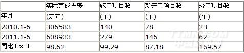 據(jù)國家統(tǒng)計(jì)局公布的數(shù)據(jù),2011年1-6月份紡織機(jī)械行業(yè)實(shí)際完成投資額60.89億元,同比增加98.62%;當(dāng)年以來到目前為止施工項(xiàng)目總數(shù)為279個(gè),同比增加99.29%;其中新開工項(xiàng)目數(shù)146個(gè),同比增加87.18%;截至6月底為止,已實(shí)現(xiàn)竣工項(xiàng)目數(shù)62個(gè),同比增加169.57%,占施工項(xiàng)目總數(shù)的22.22%,表明該行業(yè)投資項(xiàng)目進(jìn)展較好。
