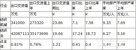 從行業(yè)產(chǎn)品出口交貨值和勞動(dòng)生產(chǎn)率水平看,2011年1-6月份紡織機(jī)械行業(yè)產(chǎn)品出口交貨值為34.10億元,占紡織全行業(yè)的0.81%;出口交貨值比上年同期增加23.86%;該行業(yè)產(chǎn)品出口比率(出口交貨值/工業(yè)銷售產(chǎn)值)為7.10%,而上年同期為7.58%,表明該行業(yè)產(chǎn)品出口狀況較好;從勞動(dòng)生產(chǎn)率的水平看,2011年1-6月份紡織機(jī)械行業(yè)平均勞產(chǎn)率(工業(yè)增加值/從業(yè)人數(shù))為9.35萬元/人,而上年同期為7.69萬元/人,表明該行業(yè)勞動(dòng)生產(chǎn)率的實(shí)際水平較為理想。