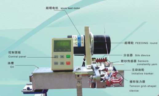 本機配備的變頻器,可控制卷繞計長,滿筒自停和斷頭自停,具有錠速自動調節,超喂線速度任意調節,滿足慢速起動,恒定線速的要求,使主卷繞與超喂送紗得到最佳配合,保證了卷裝的準確性,是當前理想的高彈絲卷繞設備。