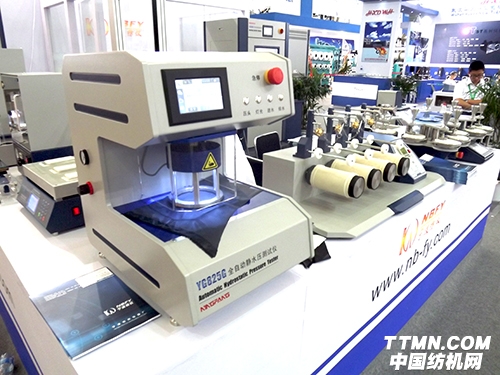 在今年的中國國際紡織機械展覽會暨ITMA亞洲展覽會上,寧波紡儀展臺前聚焦了大量專業人士前來參觀洽談。展臺負責人認真地為前來參觀的人介紹產品。寧波紡儀通過展會展示了近年來的科研成果和新技術新產品,同時也希望通過展會提升公司和產品的品牌形象,占領更為廣闊的市場。寧波紡儀在本次展會上推出了YG825G全自動靜水壓測試儀,吸引了不少客戶參觀。