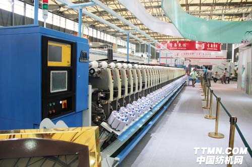 此次東飛馬佐里紡機有限公司有三臺展機參展,其中DTMl49—1200緊密紡長車型高速集體落紗細紗機和DTMl29—612賽絡緊密紡短車型高速集體落紗細紗機,現場演示的品種為TC65/35緊密紡50支,最高工藝紡紗錠速為25000轉/分,平均紡紗工藝錠速為23216轉/分。這次參展的新型紡機是在全面優化機械結構設計的基礎上,結合了應用模塊化、設計系統化、控制智能化等最新研發成果,采用公司自主研發創新的東飛牽伸系統,幫助用戶成功實現了紡紗效益最大化的夢想,迎合了紡織行業轉型升級的渴求,順應了節能、省工、高效的發展方向,并解決了紡織企業提高生產率、提升產品品質、細紗工序減員的關鍵癥結。