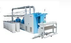 一、全新的棉卷成卷方式:采用多根小直徑的傳動輥與平皮帶組成成卷機構完成成卷,使機械速度提高到180米/分鐘,生產速度達到160米/分鐘;帶式成卷機構使棉卷與成卷帶之間呈一定包圍弧接觸,接觸面積大,成卷張力均勻,成形良好,徹底解決棉層間粘連問題。