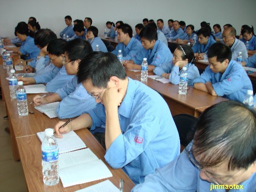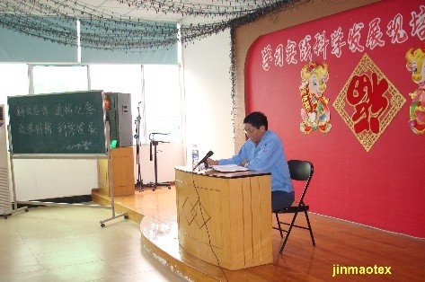 圖為公司董事長楊崇明,結合許多生動案例,向管理人員作企業如何學習實踐科學發展觀的報告。