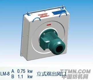 LM-8型節能吸棉風機配置電機為A型0.75KW、B型1.1KW、C型1.5KW、D型4KW替代原細紗機1.5KW、2.2KW、3KW、7.5KW電機的吸棉風機的內部結構,尤其是對葉輪采取整體結構的改進,保持或接近原來的笛管真空度水平,從而使能耗降低30%左右,節能效果明顯,據介紹改造一臺吸棉風機約九個月左右就可以收回投資。