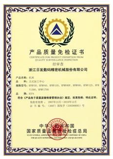 日發精機立式加工中心榮獲“國家免檢產品”榮譽稱號