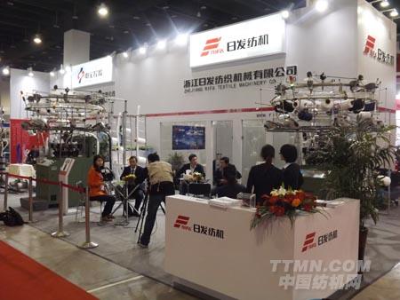 (圖為日發紡織機械的展臺 中國紡機網 TTMN.COM攝)