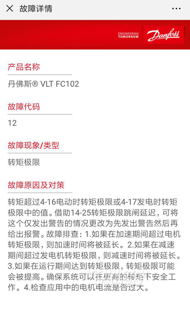 以上就是丹佛斯傳動(dòng)全新的故障速查系統(tǒng),我們希望,通過(guò)最新版的故障速查系統(tǒng),能更好得與客戶拉近距離,為大家提供最有效、最優(yōu)質(zhì)的服務(wù)。