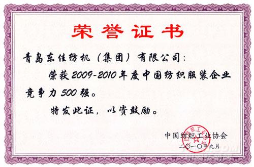 日前,中國紡織工業協會在浙江省海寧市勝利閉幕的2009-2010年度中國紡織服裝企業競爭力500強發布會上,公布了“2009-2010年度中國紡織服裝企業競爭力500強”。 青島東佳紡機(集團)有限公司以其良好的經營業績名列其中。