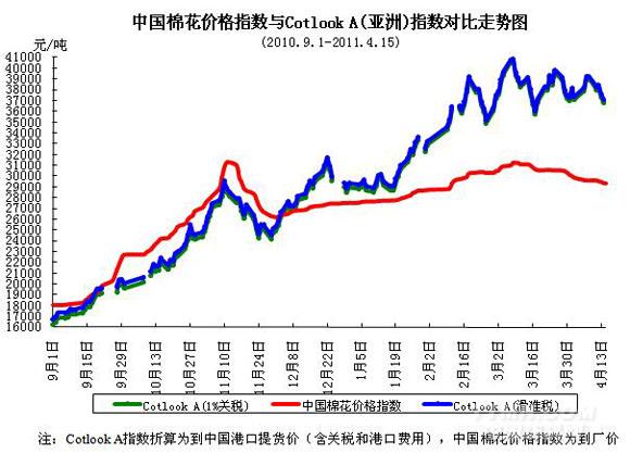 上周(4.11-4.15),紡織行業低迷,南半球新花上市銷售,國際電子盤走低,受其影響國內電子盤震蕩下行,皮棉現貨報價繼續下調,紡織廠毫無采購熱情,現貨市場難以動銷。越來越多的中小型紡織廠停產或減產,大廠減少棉花使用量。各地春播工作陸續展開,由于近兩天全國氣溫回升明顯,新疆地區播種速度加快;全國其他直播棉區或是制缽棉區播種也陸續展開。周末央行年內第四次上調存款準備金率,預計市場將凍結銀行資金3600多億元。當周中國棉花價格指數(CC Index328)周均價29446元/噸,較前周跌163元;229級30852元/噸,跌141元;527級26710元/噸,跌79元。