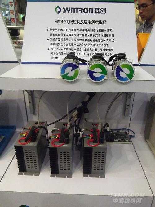 張總:好,首先看到的這個是我們自主創(chuàng)新的一個數(shù)字卷繞排線專用系統(tǒng),這是一個演示系統(tǒng),它的整個控制功能都能跟瑞士的CCM、歐瑞康這類公司進(jìn)行競爭的。它可以應(yīng)用在很多設(shè)備中,比如說精密卷繞的絡(luò)絲機、松式絡(luò)筒機、并紗機和包覆絲機等等。這些紡紗的卷繞設(shè)備,包括在廚具紡紗還有在化纖的設(shè)備上都可以實現(xiàn)高柔性化的數(shù)碼卷繞的功能。這里還有我們做的一個演示系統(tǒng),和一個加彈機的橫動演示單元。所謂加彈機的橫動有很多,原來是采用一些機械的結(jié)構(gòu)來完成的,現(xiàn)在只要通過這套全數(shù)字的系統(tǒng)來完成就可以了,大大提高了它的速度,同時它的維護(hù)成本也比較低,這樣一來,加彈機的客戶把這套系統(tǒng)應(yīng)用上以后,就能大大提高設(shè)備的生產(chǎn)效率。