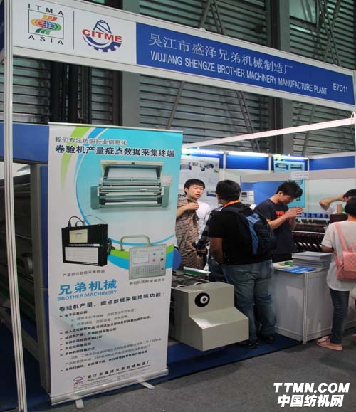 展會期間,兄弟機械展出的X860變頻卷驗機,不僅可以省電20%,且通過變頻設計自動調節張力,其技術含量令業界感嘆。此外,還為現場觀眾提供了卷驗機產量疵點數據采集終端。據悉,其電子碼表可連接步長傳感器,實時顯示布匹長度。而嵌入式可編程鍵盤,可靈活定義疵點名稱及其他鍵盤功能。同時還支持紙質檢驗單據打印和歷史檢驗單查詢等功能。工作人員告訴我們,此次參展的產品不但性能更勝從前,而且穩定性可比肩國外先進產品,甚至可取而代之。