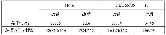 a、J14.6和JT/C65/35 13 作改前、改后同錠、同粗紗對比試驗(yàn)
