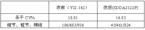 從數(shù)據(jù)看:改造后條干CV%降低了0.81%,細(xì)節(jié)、粗節(jié)、棉結(jié)均有不同程度的改善。