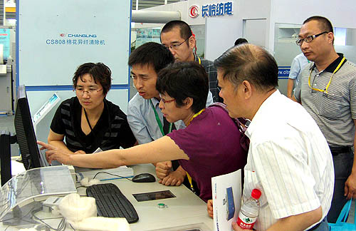 公司此次與恒鑫紡機聯(lián)合參展,展出面積300平方米,參展的25產品中有9個新產品首次亮相,全面展示了企業(yè)近年來的科技創(chuàng)新成果和整體實力。首次展出的CT4000條干儀、CF200棉纖維性能測試儀、CN200棉結測試儀、FS220自動光電驗布機、CS808棉花異纖清除機等9個新產品引起用戶和專家的關注,成為展覽會上的亮點。在展覽會上,公司還通過專題采訪和《每日展報》等形式,對公司進行了詳盡的宣傳和報道,全方位宣傳企業(yè)的科技創(chuàng)新。