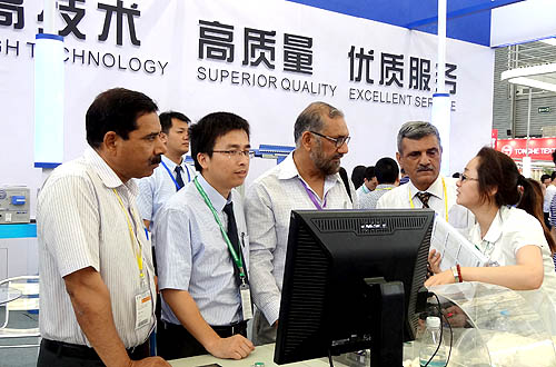 “2012年中國國際紡織機械展覽會暨ITMA亞洲展覽會” 6月12日—16日在上海新國際博覽中心隆重開幕,展覽會火爆的人氣讓今年以來因受上游紡織行業(yè)影響而一度陷入焦慮狀態(tài)的紡機企業(yè)備感鼓舞,也讓大家對行業(yè)未來的發(fā)展充滿了信心。本屆紡機展以超大的規(guī)模、先進的設備讓來自海內外的專業(yè)觀眾享受了一場真正的紡機盛宴。長嶺紡電公司共有25個產品參展,受到專家學者的密切關注。在展會期間,共接待來自全球的1000余名專業(yè)參觀者,接待國外客戶涉及泰國、印度、巴基斯坦、伊朗、孟加拉國、外蒙、越南等國家,現場簽訂合同近千萬元,收集意向合同信息5000萬元,發(fā)放資料1000余份。中國紡織工業(yè)聯(lián)合會會長王天凱,中國紡織工業(yè)聯(lián)合會副會長徐文英,中國紡織機械器材工業(yè)協(xié)會副理事長祝憲民、中國工程院院士姚穆等領導和專家蒞臨展臺,了解企業(yè)科技創(chuàng)新的情況,陜西長嶺電氣有限責任公司董事長黨委書記、公司董事長張寶會親臨展會了解行業(yè)和企業(yè)發(fā)展情況。