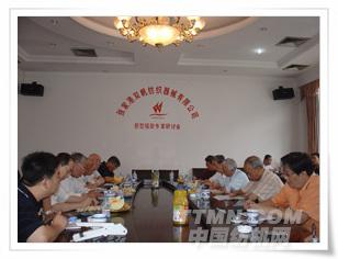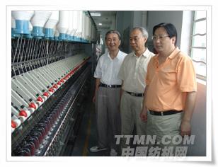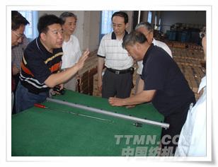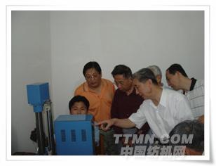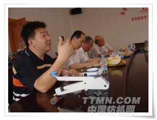 雙帆總經理姜國海向細紗牽伸理論專家唐文輝教授、張懷良副理事長等介紹零部件的制造裝配精度